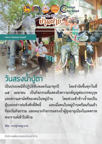 ของหมู่บ้าน OTOP นวัตวิถีบ้านฝาย หมู่ที่ 1 ตำบลบ้านฝาย อำเภอน้ำปาด จังหวัดอุตรดิตถ์ เป็นประเพณีวัฒนธรรมที่ปฏิบัติสืบทอดกันมาเป็นประจำทุกปี จัดขึ้นทุกวันที่ 15 เมษายน ของทุกปี เป็นกิจกรรมที่แสดงถึงความกตัญญูต่อบรรพบุรุษและความสามัคคีของคนในชุมชน โดยช่วงเช้าข้าวจ้ำจะเป็นผู้บอกกล่าวต่อสิ่งศักดิ์สิทธิ์ และเมื่อคนในหมู่บ้านพร้อมกันแล้วก็จะเริ่มกิจกรรม แลผนวกรวมกับกิจกรรมสรงน้ำผู้สูงอายุเนื่องในเทศกาลสงกรานต์ด้วย
